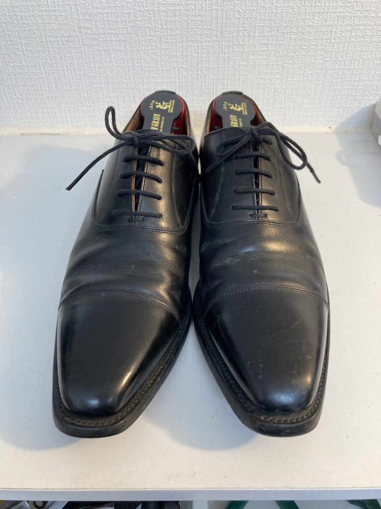 スコッチグレインは特に光り方がきれいなので、変化がわかりやすい靴です。