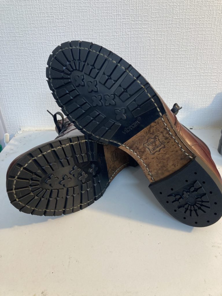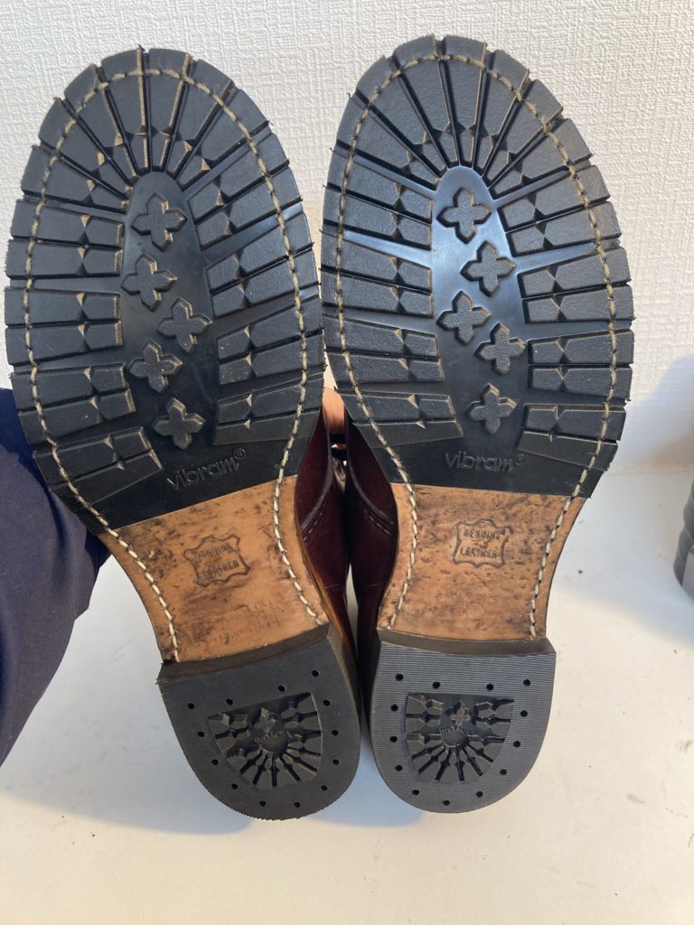 元々カスタムでvibram#1136で交換してありましたが、すり減ってきたためまた同様に張り替え修理をさせていただきました!